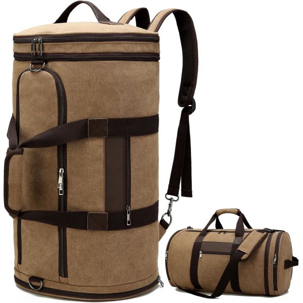 The regular size of the canvas travel bag is 21 inches (L) x 12 inches (W) x 12 inches (H). By opening the side zipper, it can be expanded to 25 inches. The bag has a maximum capacity of 58 liters, allowing for the storage of clothing, shoes, computers, books, cell phones, and other necessary items for a 2-3 day trip, the size of the travel bag is very suitable as a carry-on bag on the airplane.